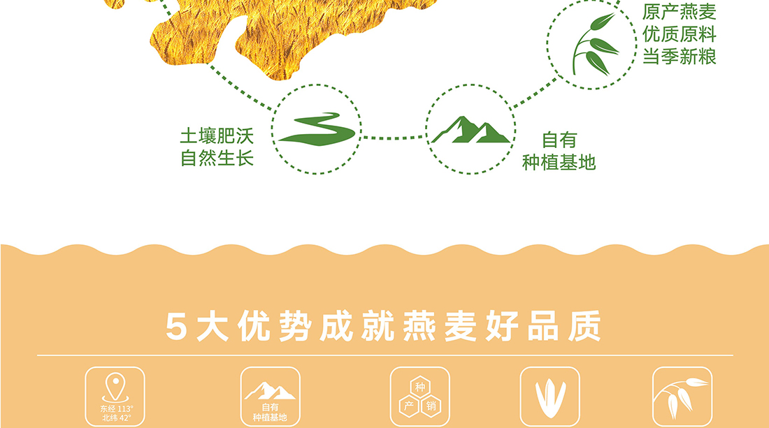 內蒙古,世界裸燕麥起源地之一;陰山源生燕麥在初出生滿足生長規(guī)律一切所需,高寒、高海拔、日照充足;遵循自然法則,靠天滋養(yǎng),自然生長;