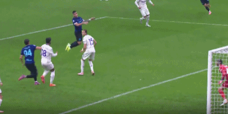 第71分鐘,蘇契奇連過(guò)兩人禁區(qū)抽射破門(mén),國(guó)米2-0佛羅倫薩