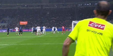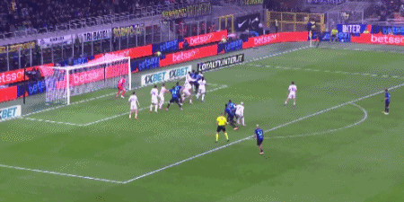第8分鐘,恰爾汗奧盧開(kāi)出任意球,勞塔羅頭球頂高