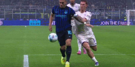 第6分鐘,勞塔羅禁區(qū)線(xiàn)摔倒在地,裁判沒(méi)有判點(diǎn)