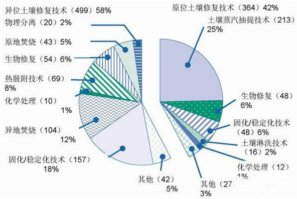 美國(guó)超基金場(chǎng)地修復(fù)項(xiàng)目技術(shù)使用分布圖
